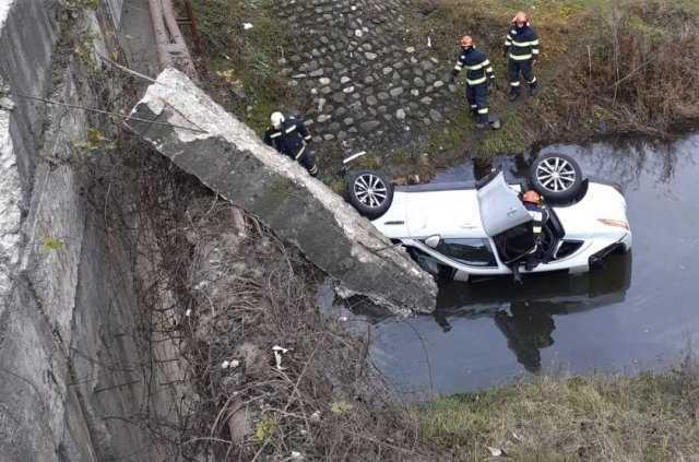 Autoturismul a căzut în apă de la cel puțin cinci metri înălțime.