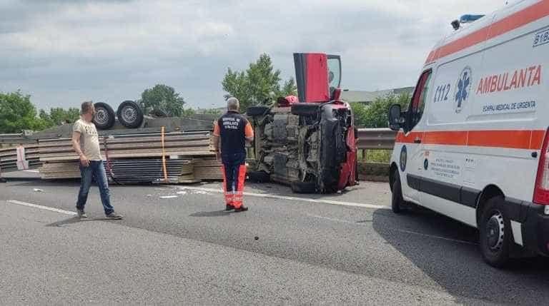 Accident A1 ambulanta - Accident pe A1! Mașină răsturnată