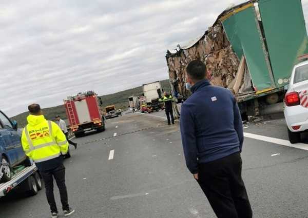 Un accident rutier a avut loc în această seară pe Autostrada A1 Sibiu-Deva, în care au fost implicate 2 camioane, un cap tractor și un autoturism. O femeie a ajuns la spital.