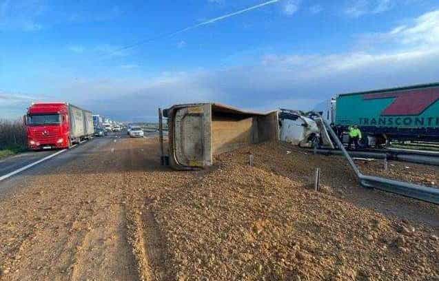 tir rasturnat e1682055212539 - ACUM! TIR răsturnat pe A1!