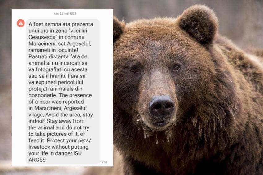 Este ALERTĂ de urgență în sat Argeșelul, comuna Mărăcineni, Argeș, după ce a fost semnalată prezența unui urs în zona „Vila lui Ceaușescu”.