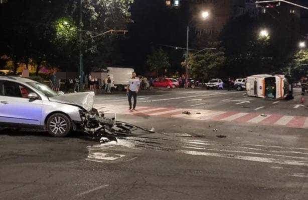 În eveniment a fost implicată și o ambulanță care se afla în misiune, iar în urma impactului violent dintre aceasta și un autoturism, autospeciala s-a răsturnat.
