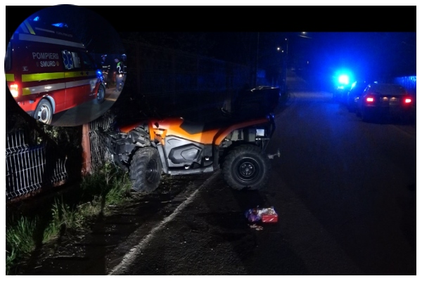 O plimbare care se putea termina tragic! Un tânăr de 17 ani din Lerești a trecut prin momente cumplite după ce a avut un accident cu ATV-ul pe care îl conducea. Vehiculul a lovit un gard, iar acesta a fost aruncat pe asfalt. Grav este că puștiul nici nu avea permis pentru a conduce ATV -ul.