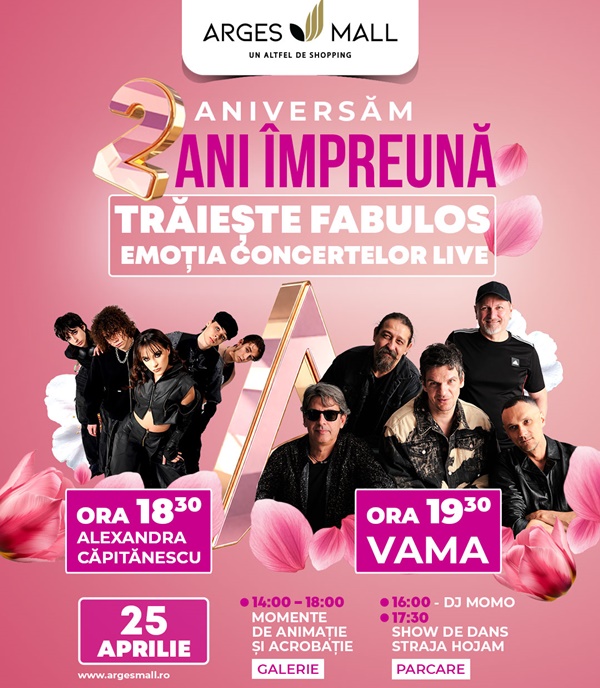 Prin acest program amplu și divers, Argeș Mall celebrează doi ani de experiențe memorabile, oferind comunității un mix perfect de magazine, divertisment și momente speciale petrecute alături de cei dragi, într-un spațiu dedicat relaxării, distracției și shoppingului de calitate. Vă așteptăm, cu drag, să sărbătorim împreună 2 ani fabuloși de la deschiderea celui mai mare centru comercial din regiune! ”, transmit reprezentanții Argeș Mall