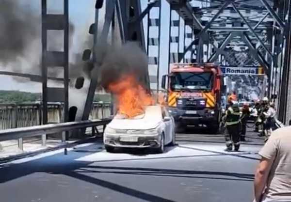 Traficul este blocat, în această după-amiază, pe podul de peste Dunăre, între Giurgiu și Ruse, din cauza unui autoturism care a luat foc în mers.