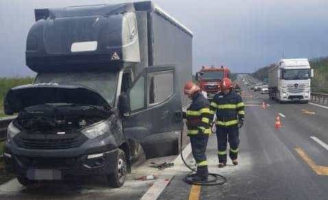 Un incendiu a izbucnit, în urmă cu doar câteva momente, la o autoutilitară pe Autostrada A1, în zona km 107.