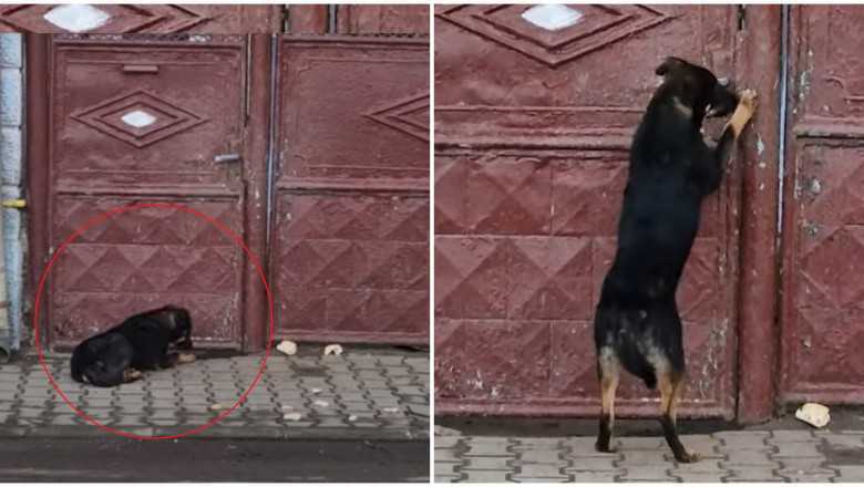 Animăluțul a plâns timp de câteva ore la poarta casei, acolo unde a fost auzit de mai mulți gtrecători care au filmat scenele.