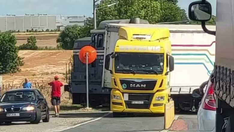 Un camion încărcat cu 20 de tone de substanțe periculoase a fost izbit de tren în județul Timiș