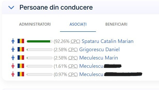 De câteva zile, CDM Comastrad are un nou acţionar majoritar, iar acesta este nimeni altul decât cunoscutul om de afaceri Cătălin Spătaru. Conform noii structuri a asociaţilor, Cătălin Spătaru deţine 92,26% din CDM Comastrad şi este unicul beneficiar al companiei. Marin Meculescu şi Daniel Grigorescu au rămas cu câte 2,58% din firmă, în vreme ce soţia şi fiica lui Alexandru Meculescu mai au şi ele tot 2,58 procente.