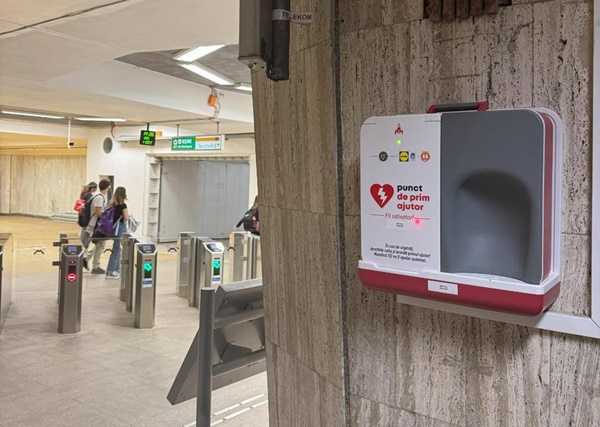 În cadrul proiectului național „Punct de prim ajutor. Fii salvator!”, 13 stații de metrou din București au fost dotate cu defibrilatoare automate pentru a veni în sprijinul persoanelor care suferă un stop cardio-respirator.