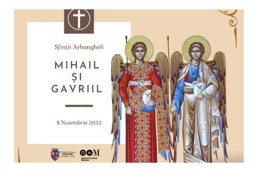 Cu prilejul sărbătorii închinate Sfinţilor Arhangheli Mihail şi Gavriil, echipa Centrului Cultural Mioveni transmite gânduri calde, însoţite de sincere urări de bine, tuturor celor care îşi celebrează ziua numelui.