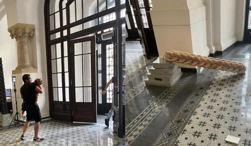 Au apărut imagini cu incidentul grav care a avut loc, luni, pe holul Primăriei Capitalei, atunci când o statuie a căzut peste un copil de 7 ani.