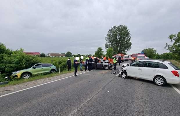 Accident în lanț pe o șosea din Satu Mare. Trei mașini s-au izbit violent, după ce unul dintre șoferi ar fi adormit la volan și ar fi pătruns pe contrasens.