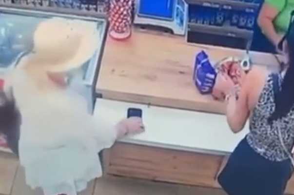 În imaginile postate de sursa citată, se poate observa cum femeia vede telefonul pe tejgheaua magazinului și îl ia.