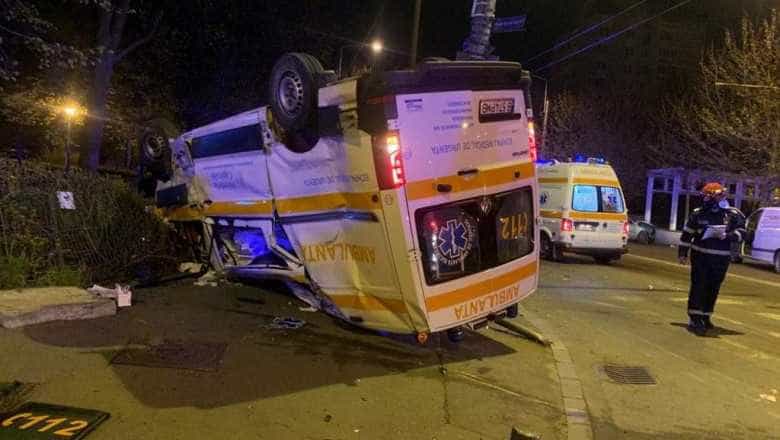 În urma impactului ambulanța a fost proiectată într-un alt autoturism, care era oprit în intersecție.
