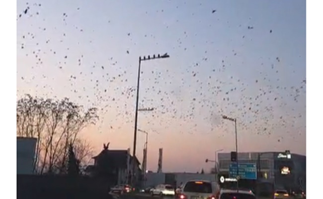 Mii de păsări au fost surprinse în jurul orei 18:00, în zona Podul Viilor. Imaginile erau parcă desprinse din filme, cerul fiind acoperit de stoluri impresionante de ciori.