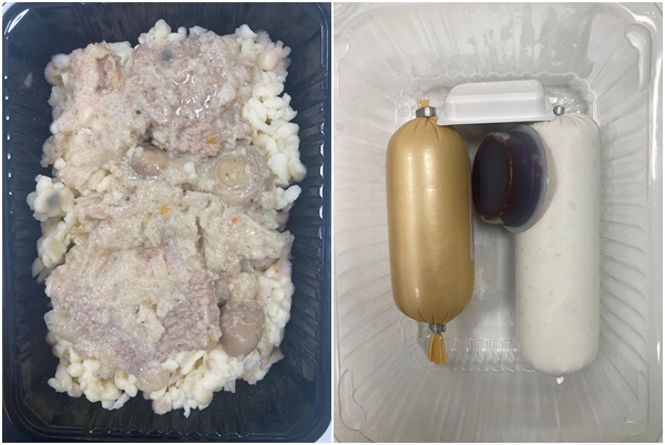 În imaginile publicate de oficial apar două caserole: una cu ceea ce pare a fi orez cu ciuperci și carne, iar cealaltă conține două tuburi cu o cremă de brânză și posibil un pateu, alături de o cutie mică de unt și una de gem.