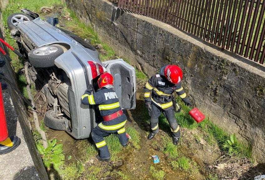 Mașină răsturnată în Mărăcineni! Intervin pompierii