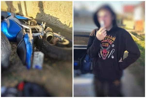 Până la urmă, tânărul și-a abandonat motocicleta pe marginea drumului și a fugit, dar a fost găsit.