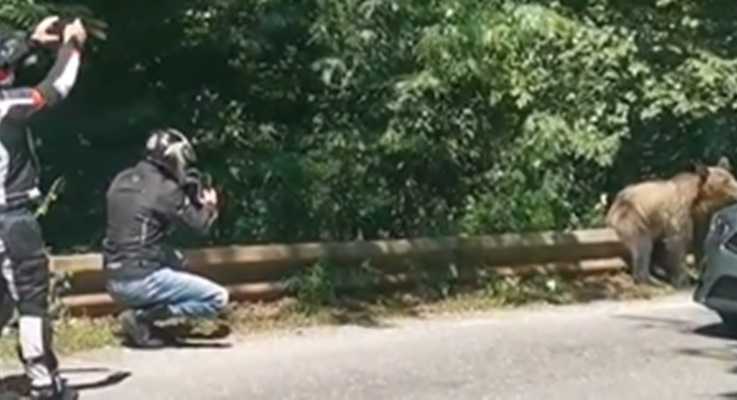 Ei au oprit pe marginea drumului ca să facă poze unui urs, însă imaginile îi puteau costa scump. Unul dintre ei a fost la un pas de a fi rănit.