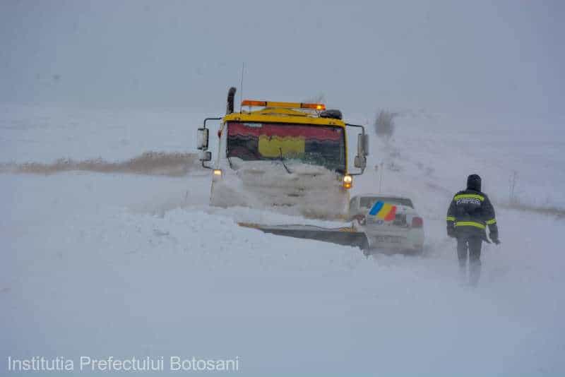 De la ora 21:30 se închide circulaţia pentru toate categoriile de autovehicule în judeţele Botoşani şi Iaşi! Măsura a fost luată de CNAIR împreună cu Poliţia Rutieră din cauza fenomenelor meteorologice extreme. Decizia are ca principal scop protejarea vieţii cetăţenilor, care ar putea rămâne blocaţi pe drum în propriile autovehicule. Precizăm că această măsură se aplică şi mijloacelor de transport persoane, aşa că plecarea din autogări a autovehiculelor este interzisă pe perioada restricţiilor instituite. Reamintim că Administraţia Naţională de Meteorologie (ANM) a emis o avertizare de Cod roşu de viscol şi ninsori abundente pentru judeţele Botoşani şi Iaşi. Vizibilitatea va scădea spre zero pe anumite sectoare de drum! Evitaţi deplasările în aceste zone până la încetarea fenomenelor meteo periculoase”, avertizează reprezentanţii companiei de drumuri.