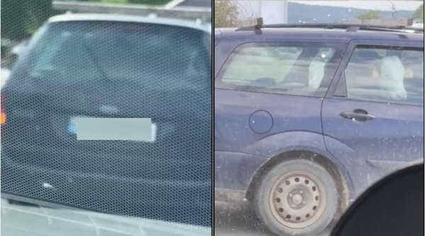 Imaginile au fost surprinse de un alt participant la trafic, uluit de cum a putut fi înghesuit animalul pe bancheta din spate a mașinii, pe care mai apoi le-a postat pe Internet, relatează antena3.ro