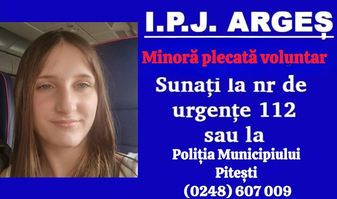 Potrivit IPJ Argeș, mama copilei s-a prezentat în cursul zilei de astăzi, 01 ianuarie 2026, în jurul orei 13:00, la Secția 1 Poliție Pitești, unde a anunțat că fiica sa, Stanciu Georgia Aura, a plecat voluntar și nu s-a mai întors acasă.
