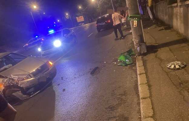 Impactul a provocat avarii considerabile autoturismului, iar un coș montat pe stâlp a fost rupt.