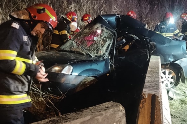 În interiorul vehiculului, pompierii au identificat o persoană încarcerată pe care au extras-o de urgență și au predat-o echipajului medical.