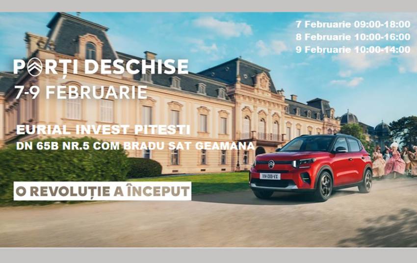 De vineri, 7 februarie, până duminică, 9 februarie, la Eurial Pitești este organizat evenimentul ”Porți Deschise”, cu ocazia lansării noului Citroen C3  – O REVOLUTIE A ÎNCEPUT. Sunt anunțate sesiuni de Drive Test și multe surprize pentru participanți.