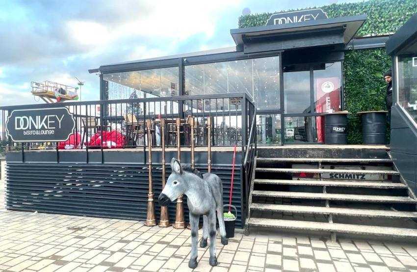 Așa cum sugerează și numele, locația are ca temă simpaticele necuvântătoare, iar clienții vor fi întâmpinați chiar de la intrare de o mascotă care întruchipează un măgăruș. Restaurantul cuprinde parter și etaj și are o capacitate de aproximativ 200 de persoane. Clienții vor putea servi aici preparate rapide ca pizza sau produse la grill, dar și diverse feluri de mâncare în stil grecesc, italian sau românesc. Pâine oferită celor care vor servi masa la „Donkey” va fi preparată într-un cuptor pe stil vechi, iar clienții se vor putea bucura și de o expoziție de mașini de epocă.