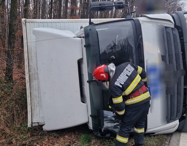 Un accident rutier a avut loc ieri dimineață, pe raza comunei Cotmeana, în satul Zamfirești. Șoferul unui autocamion a pierdut controlul volanului și s-a răsturnat cu mastodontul în afara părții carosabile.