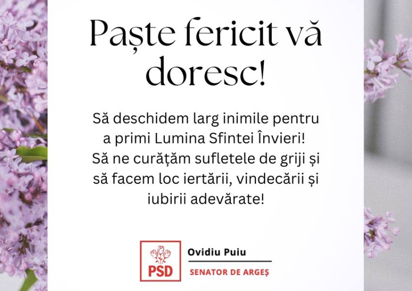 Să deschidem larg inimile pentru a primi Lumina Sfintei Învieri! Să ne curățăm sufletele de griji și să facem loc iertării, vindecării și iubirii adevărate!