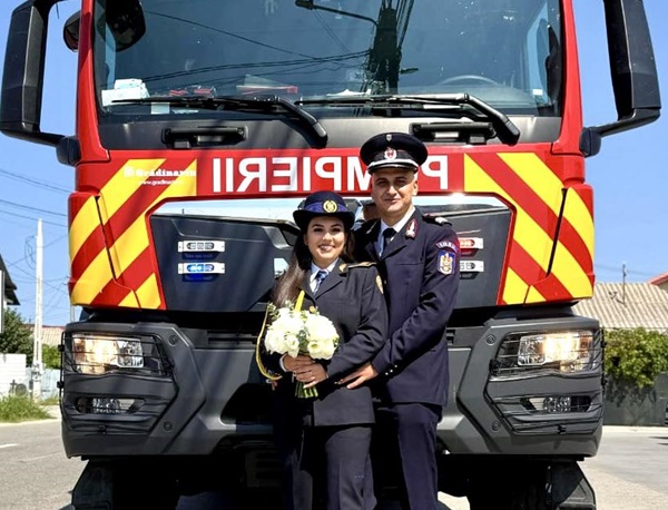 Un moment deosebit și plin de emoție a avut loc astăzi în județul Argeș, unde Alexandru Deaconu, pompier la Pichetul Vedea, și-a unit destinul cu Cristiana, angajată la Penitenciarul – Spital Mioveni. Cei doi au ales să spună „Da!” într-un mod aparte, purtând cu mândrie uniformele de serviciu în locul ținutelor tradiționale de ceremonie.