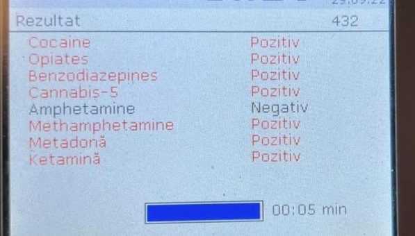 – Nu, pentru că aici rezultatul este afișat cu pozitiv sau negativ.Și rezultatul a fost o surpriză… doar amphetamina lipsea.