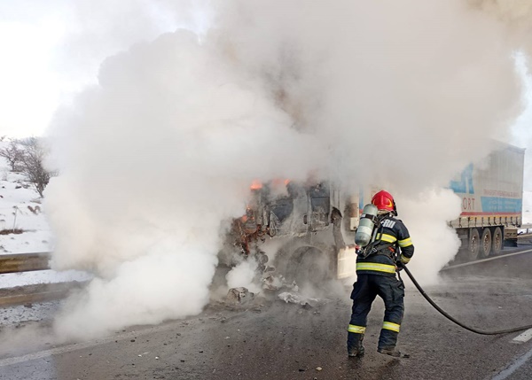 Șoferul a oprit la timp pe banda de urgență, iar pompierii au intervenit imediat pentru lichidarea incendiului. Din fericire, nu au fost înregistrate victime.