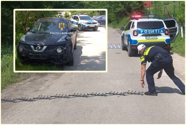 Imediat, a fost declanșată o acțiune de urmărire, la care au participat polițiști din mai multe secții, dar și echipaje de la Poliția Municipiului Câmpulung. Pentru a-i bloca drumul, agenții au folosit dispozitivul de tip „Spike” – un set de țepi special conceput pentru oprirea în siguranță a vehiculelor conduse de persoane care refuză să respecte indicațiile legale.