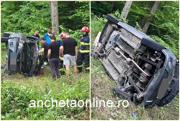 Din primele informații, șoferul unui autoturism a pierdut controlul asupra direcției, a părăsit partea carosabilă și s-a răsturnat cu mașina pe o parte.
