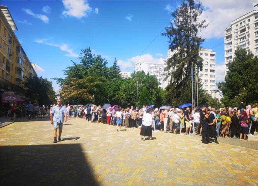 Astăzi, în jurul prânzului, credincioșii stăteau la o coadă imensă (mai bine de jumătatea distanței dintre Biserică și Trivale Shopping Center) pentru a se ruga la icoana făcătoare de minuni a Maicii Domnului – ”Mângâietoarea” – de la Vatopedu (Muntele Athos) ce este la Biserica Domnească ”Sfântul Gheorghe” din Pitești, unde va rămâne până joi dimineață.