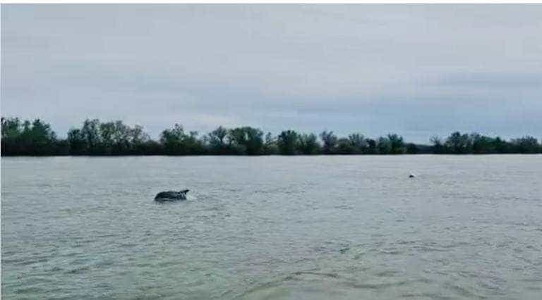 Mai mulți delfini au fost surprinși pe Dunăre, în dreptul orașului Sulina. Turiștii s-au îngrămădit să îi filmeze, iar imaginile au fost postate și pe rețelele de socializare.
