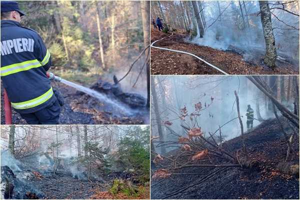 Din fericire, nu au fost înregistrate victime, iar în urma evenimentului au ars litieră de pădure și buturi uscate.