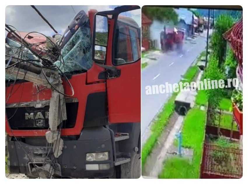 O cumplită tragedie a fost pe cale să se producă, luni, în localitatea Lerești, acolo unde șoferul unei autobasculante a pierdut controlul asupra volanului, a intrat într-un microbuz parcat în fața unei porți, ulterior oprindu-se într-un stâlp.