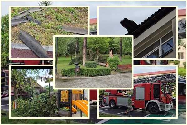 Pompierii au fost solicitați să intervină atât pentru degajarea elementelor de acoperiș cât și pentru tăierea arborilor doborâți.