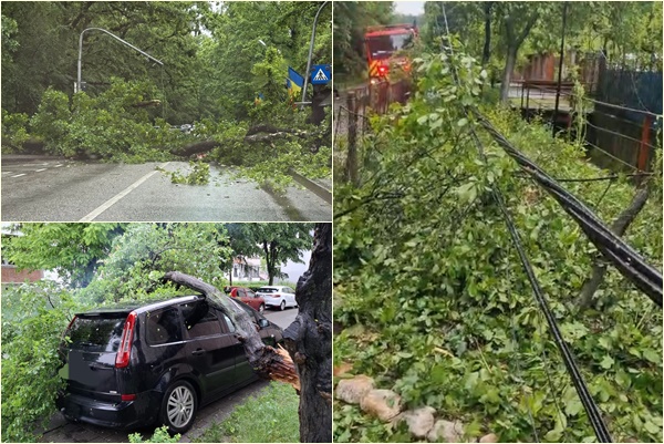 O primă intervenție a avut loc pe strada Zamfirești, unde un copac a căzut și a blocat trotuarul.